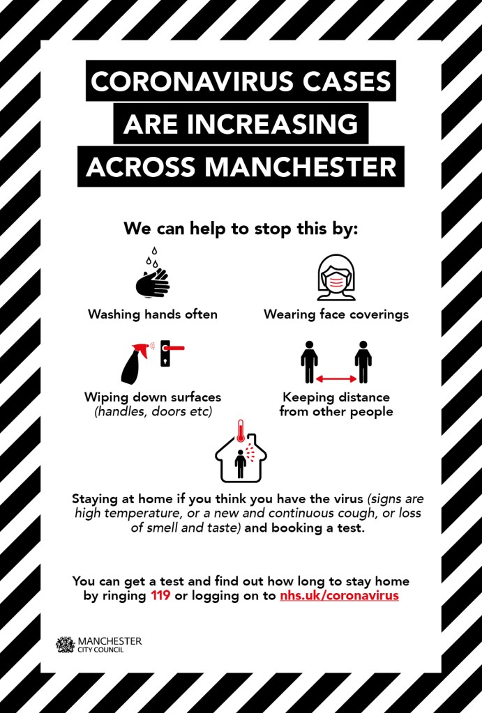 August 25, 2020 nmfm1066 Coronavirus Cases are Increasing Across Manchester: What Can You Do? For latest updates follow the links at:https://secure.manchester.gov.uk/info/500361/coronavirus Share this: Click to share on X (Opens in new window) X Click to share on Facebook (Opens in new window) Facebook Like Loading... Related