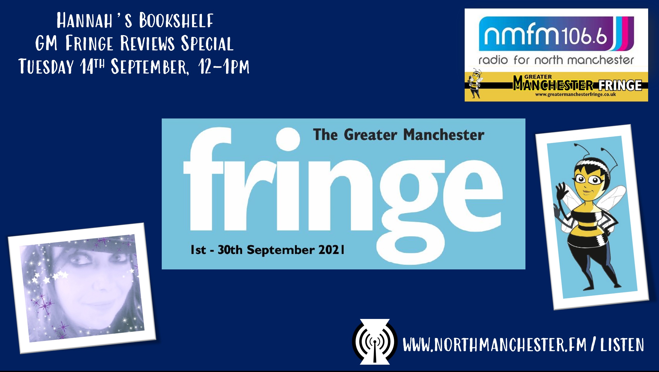 Tune in to North Manchester FM this Tuesday at 12noon for a special edition of Hannah’s Bookshelf! Throughout September, I’ll be reviewing a selection of the shows on this year’s Greater Manchester Fringe festival programme. I’ll be sharing my reviews on North Manchester FM in a series of special episodes of Hannah’s Bookshelf this month.