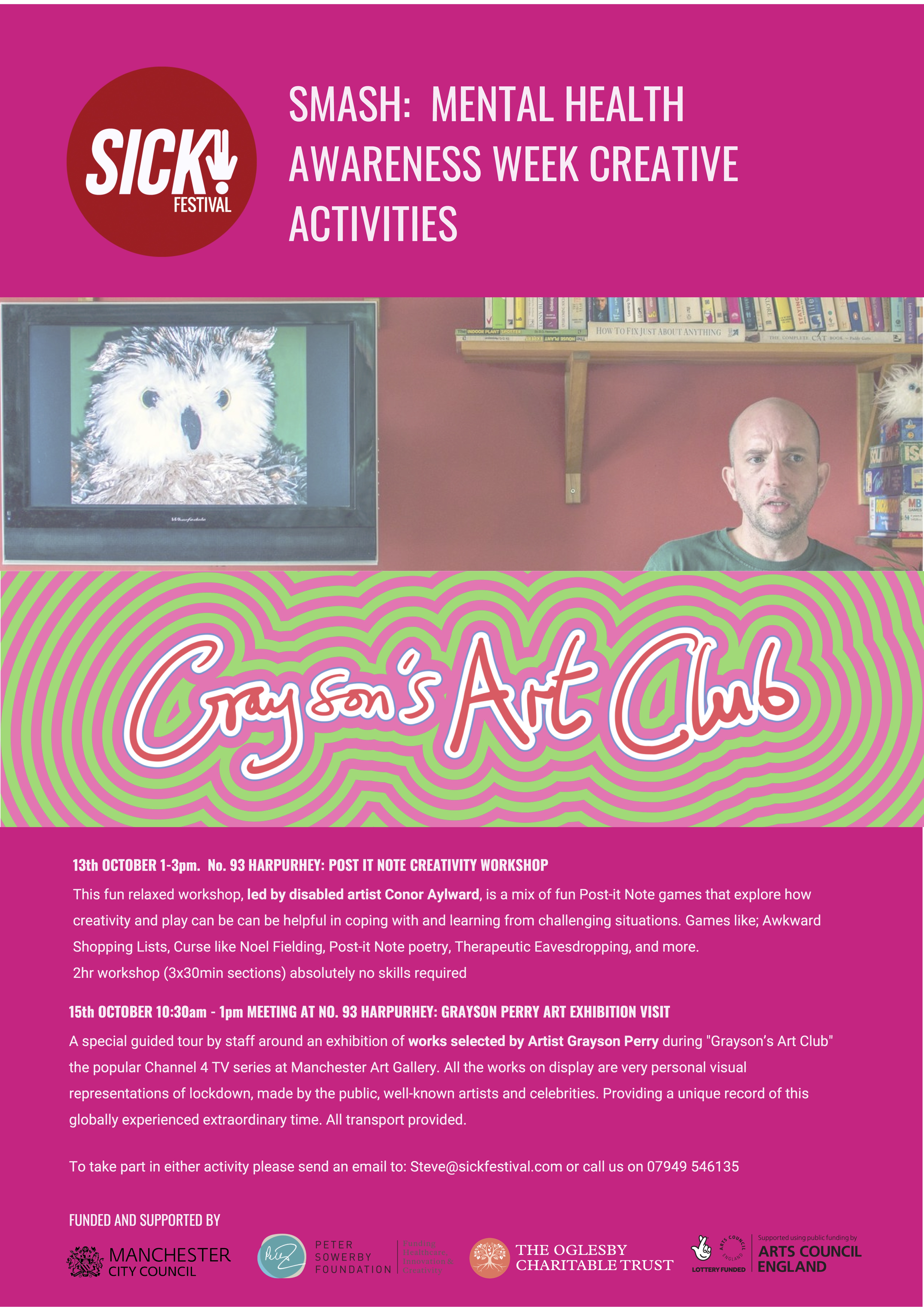 This fun relaxed workshop, led by disabled artist Conor Aylward, is a mix of fun Post-it Note games that explore how creativity and play can be can be helpful in coping with and learning from challenging situations. Games like; Awkward Shopping Lists, Curse like Noel Fielding, Post-it Note poetry, Therapeutic Eavesdropping, and more.