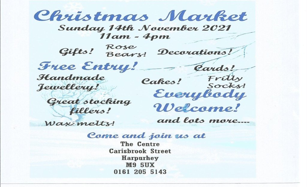 There is a Christmas Market at The Centre/ Harpurhey Neighbourhood Project, home of North Manchester FM 106.6 on Sunday 14th November from 11am until 4pm.