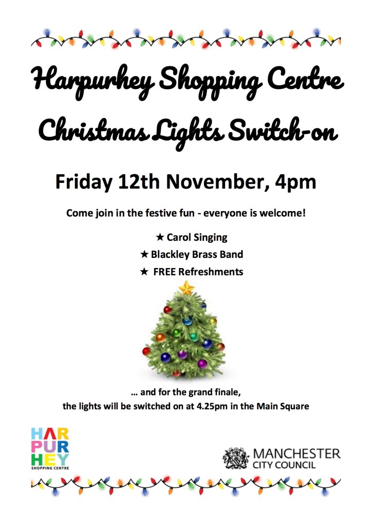 The annual Harpurhey Christmas Light Switch-on will take place at the Harpurhey Shopping Centre on Friday 12th November, from 4pm.