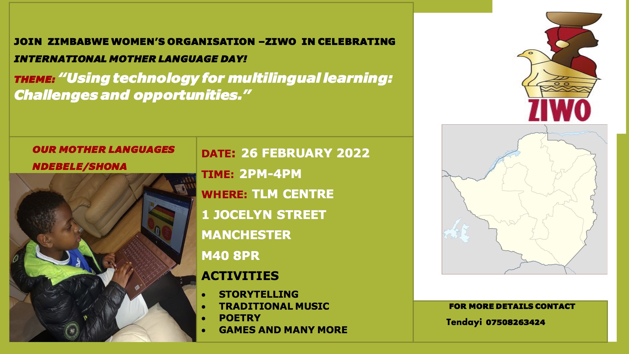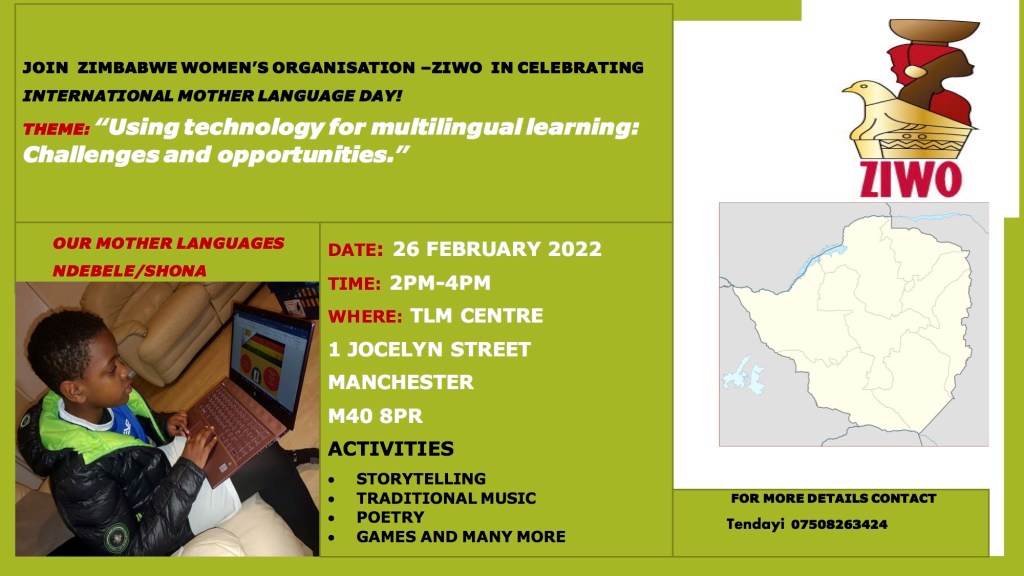 In this programme North Manchester FM 106.6 will talk to Tendayi Madzunzu and others about the work of ZIWO, the Zimbabwe Women’s Organisation, and their International Mother Language Day event which is taking place on Saturday 26th February at The TLM Centre, 1 Jocelyn Street, Monsall, Manchester, M40 8PR.