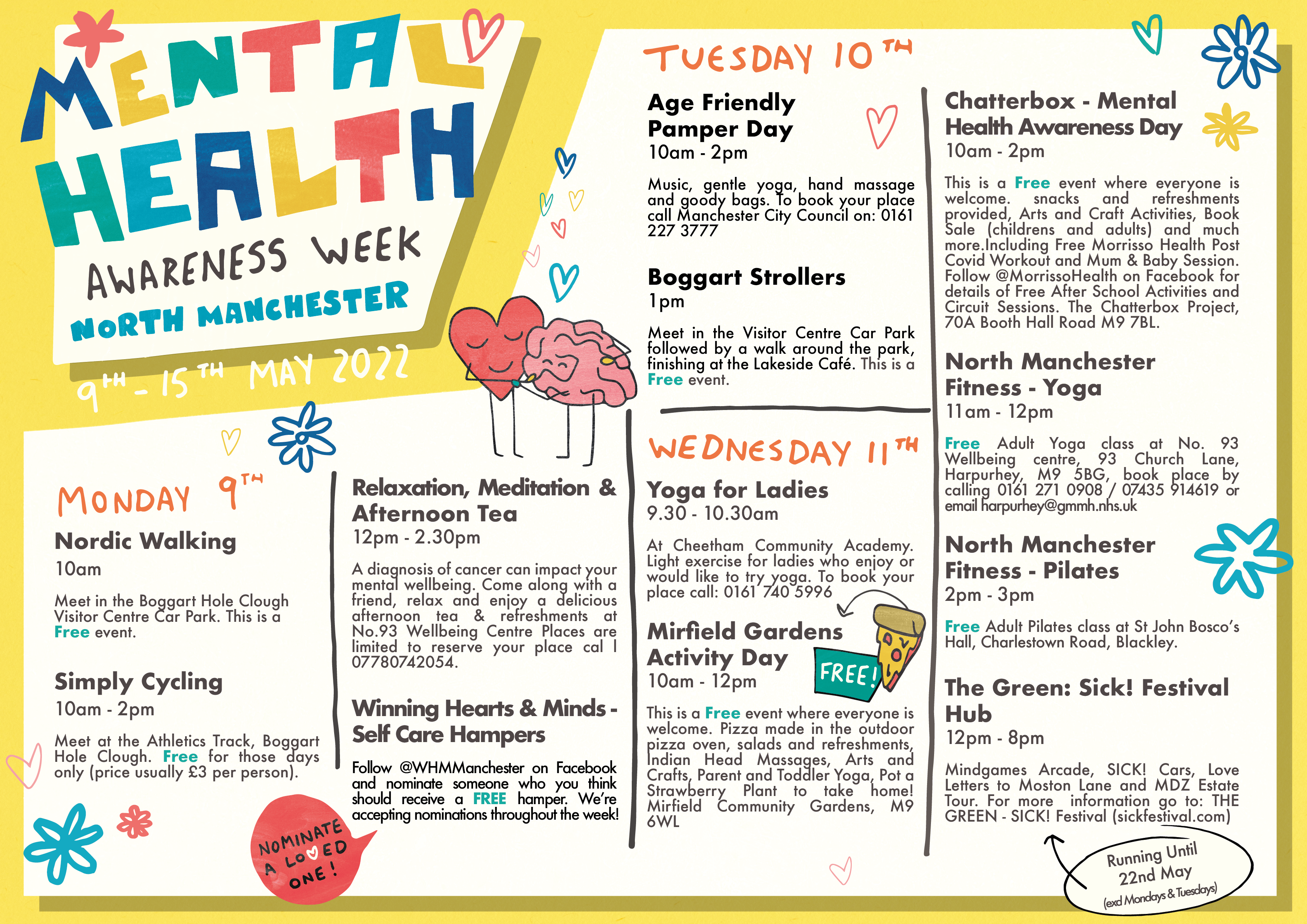 May 9, 2022 nmfm1066 It’s North Manchester Mental Health Awareness Week from 9th – 15th May. Share this: Click to share on X (Opens in new window) X Click to share on Facebook (Opens in new window) Facebook Like Loading... Related