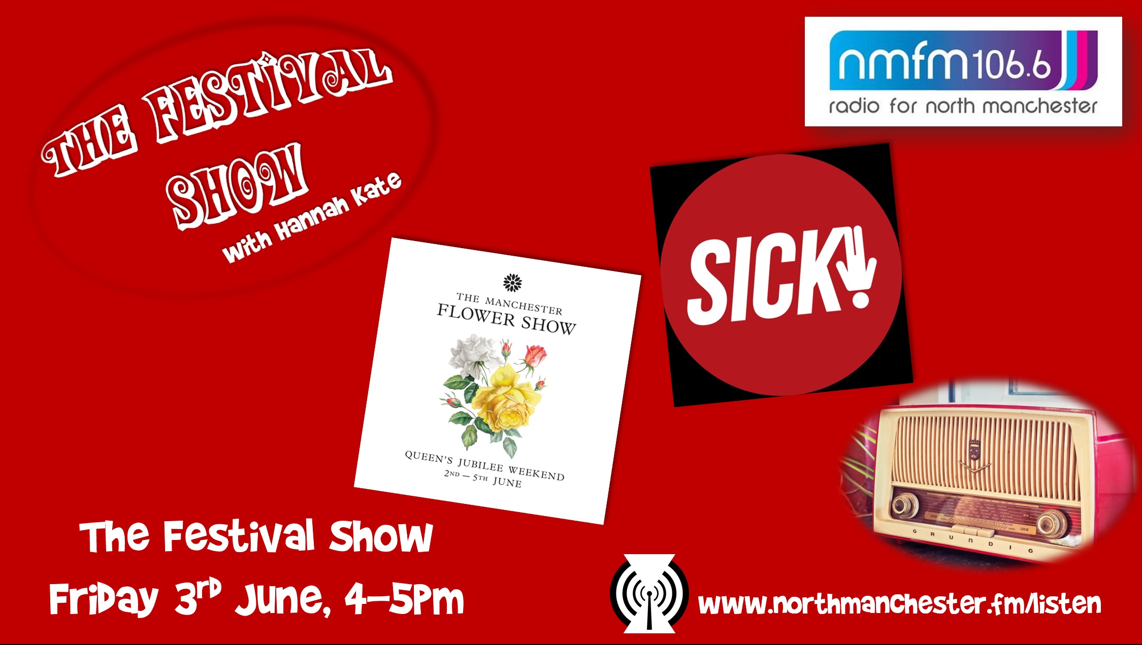 Join me on Friday at 4pm for The Festival Show on North Manchester FM. This week’s episode will be taking a last look at this year’s SICK! Festival and a first look (for me) at the Manchester Flower Show, and here’s what’s coming up on Friday…