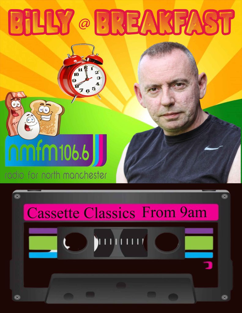 August 1, 2022 nmfm1066 Tune to Billy at Breakfast from 8am next Monday Tune in to Billy @ Breakfast this Monday from 8am with Cassette Classics from 9am. Tune in this Monday from 8am on North Manchester FM 106.6 on your radio, online and on your smart speakers! Share this: Click to share on X (Opens in new window) X Click to share on Facebook (Opens in new window) Facebook Like Loading... Related