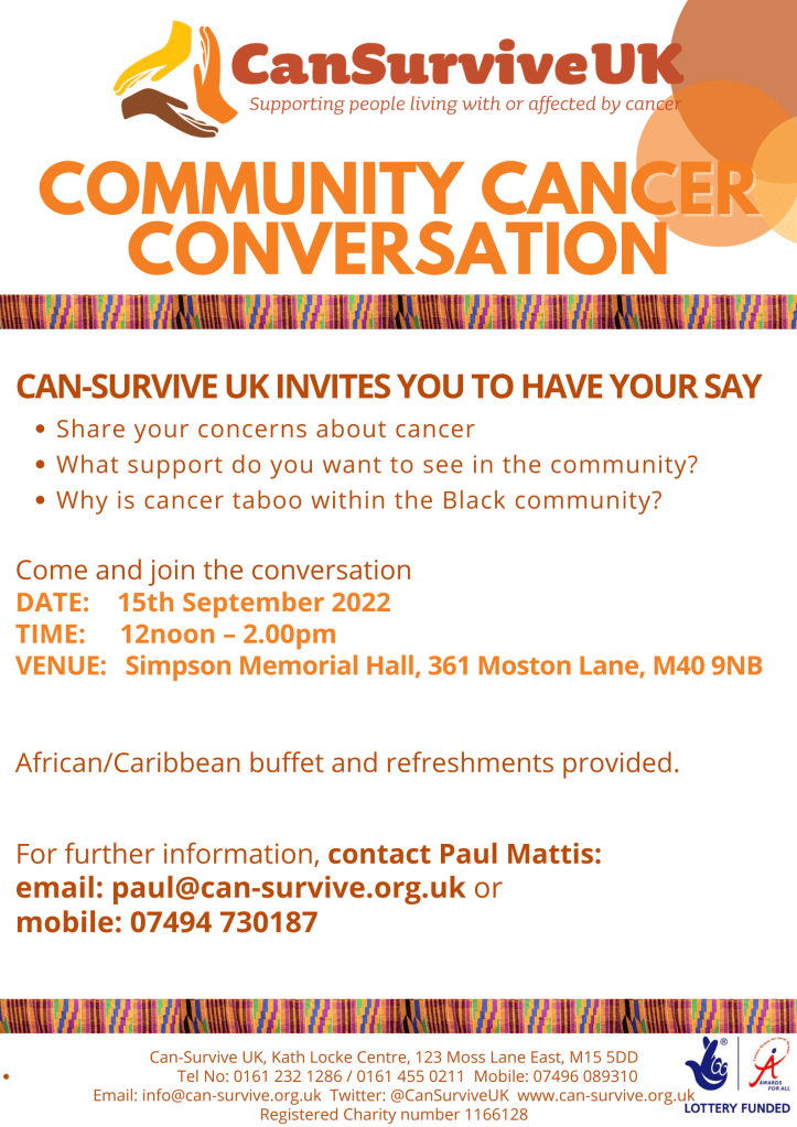 August 25, 2022 nmfm1066 Event: CanSurviveUK Community Cancer Conversation 15th September 2022 Share this: Click to share on X (Opens in new window) X Click to share on Facebook (Opens in new window) Facebook Like Loading... Related