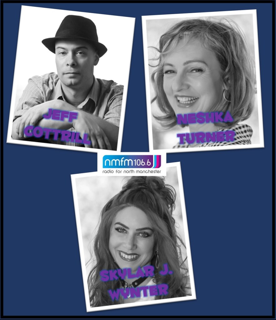 Join me on Saturday at 2pm for another episode of Hannah’s Bookshelf on North Manchester FM. This week, I’ll be joined in the virtual studio by Jeff Cottrill, Skylar J. Wynter and Neshka Turner. It’s the first triple-header on Hannah’s Bookshelf!