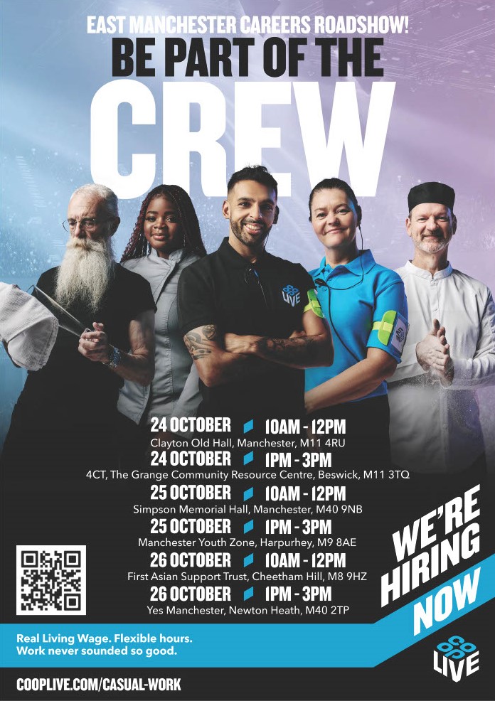 Coop Live are hosting 6 Roadshows where you can find out more about the flexible positions. Scan the QR code above or see the website for more information.
