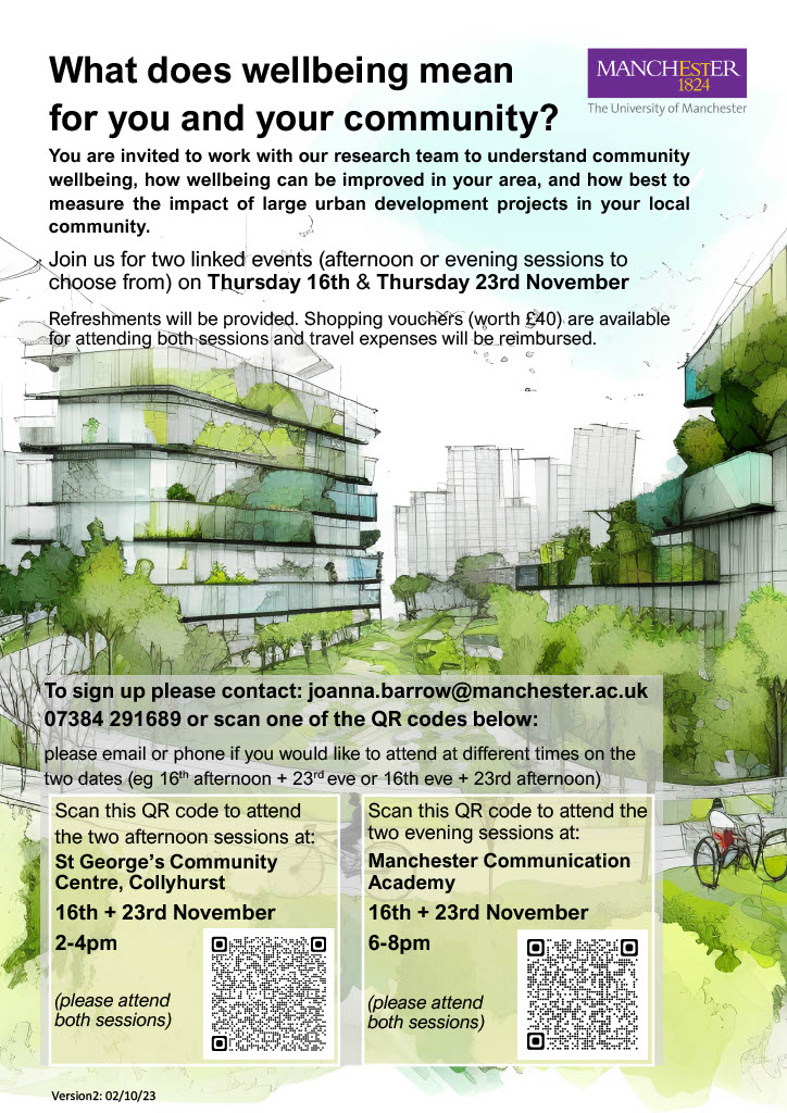 They are keen to attract people from all walks of life and all backgrounds to reflect all groups represented in the local communities across North Manchester. It’s important to highlight they’re asking people to attend two linked discussion sessions, one week apart. In return they are offering a £40 shopping voucher.