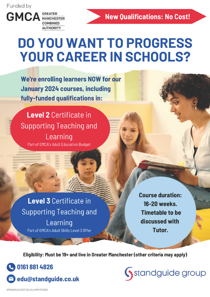 Standguide Group are an Open Day for our Supporting Teaching and Learning qualification to be taught in Manchester City Centre on Monday 11th December.