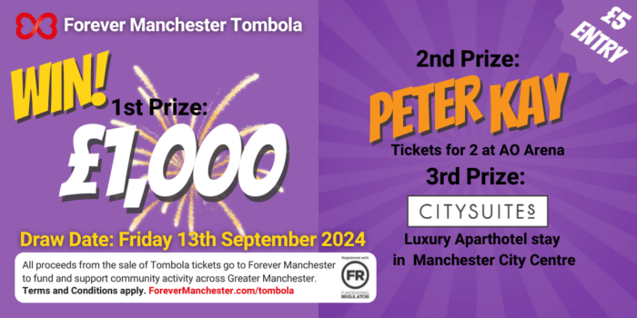 Tune into to the Forever Manchester Audio Show, tonight from 9pm. The next draw of Forever Manchester’s Tombola Prize Draw will take place on Friday 13th September 2024.