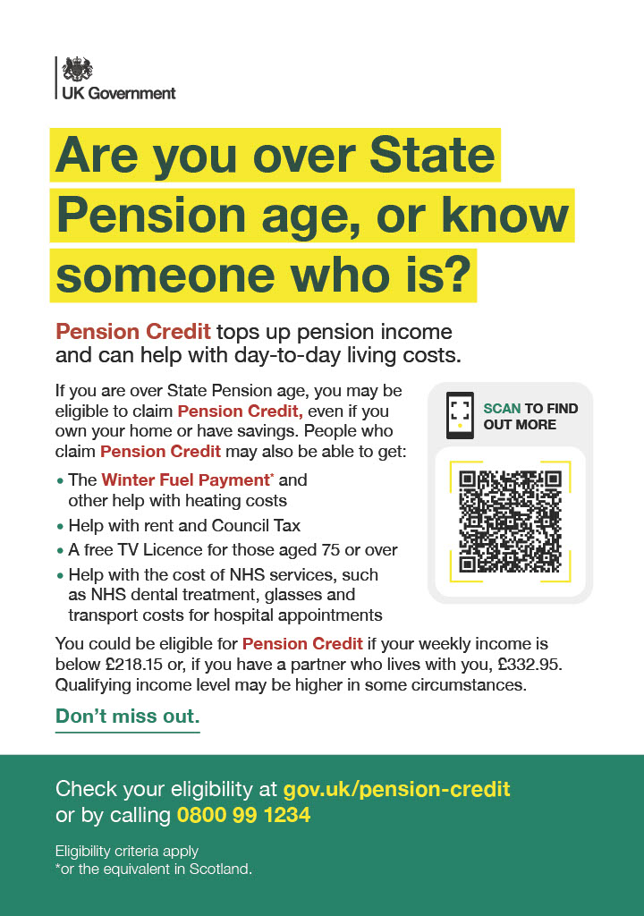 Pension Credit tops up weekly income to a guaranteed minimum level of £218.15 a week for single pensioners or £332.95 for couples. It is a tax-free payment for those who: