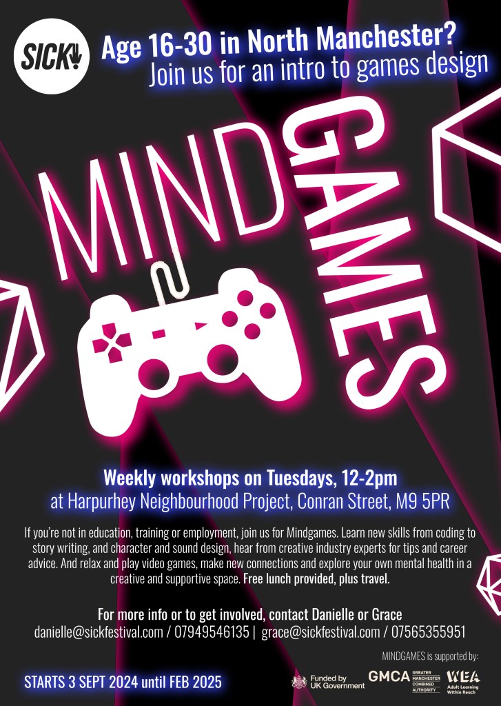 On this week’s edition of Northern Lights there’s an interview with Danielle from Sick Festival about their Mind Games Project, details of a new Harpurhey Course in Maths & English from Total People, Info on this weekend’s Manchester Art Fair & open day at Grit Art Studios this Saturday