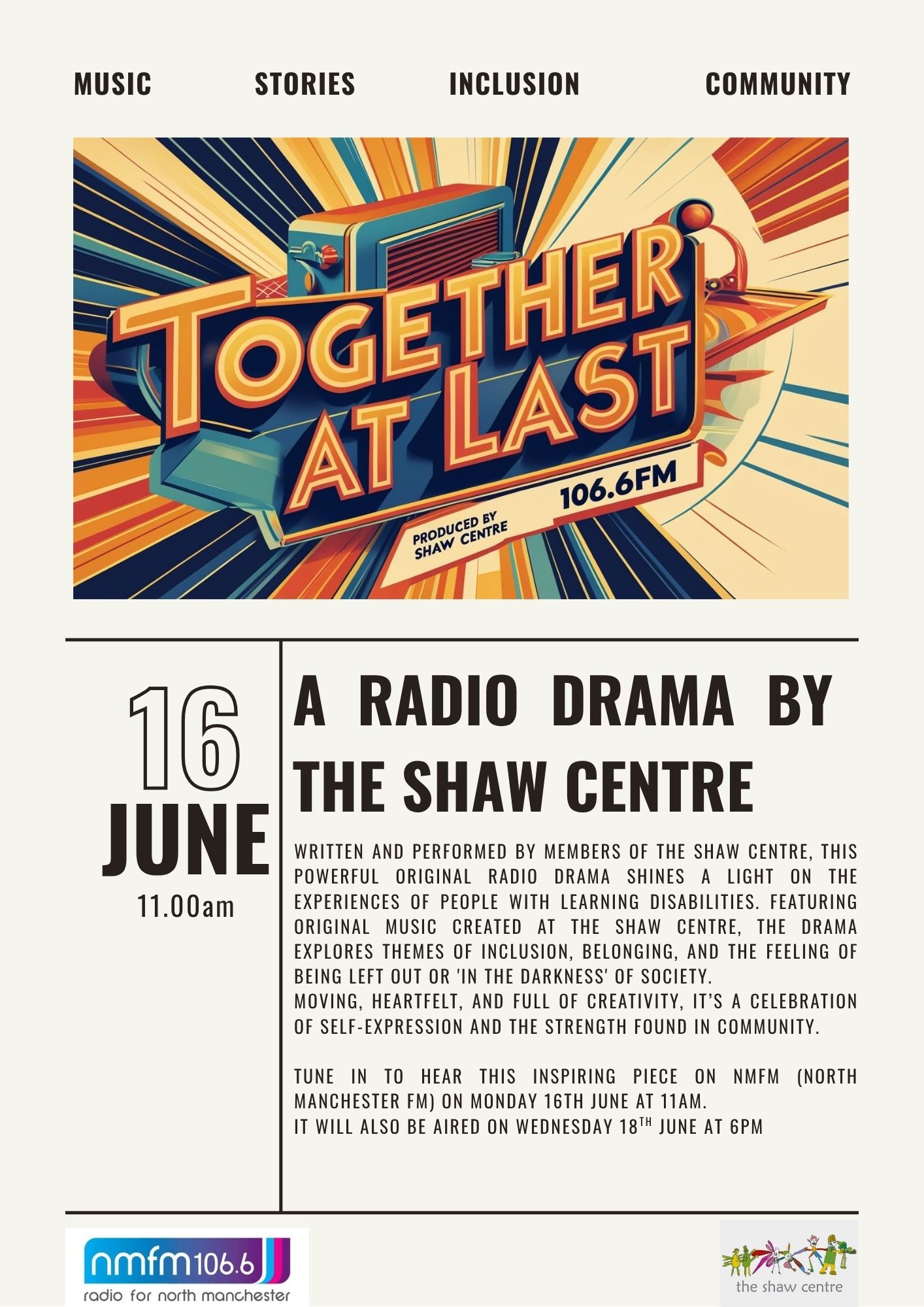 It’s Learning Disability Week, and we’re kicking off in fine style with a brand new radio drama put together by the Shaw Centre. It features original music and explores theme of inclusion, belonging and the feeling of being left out.