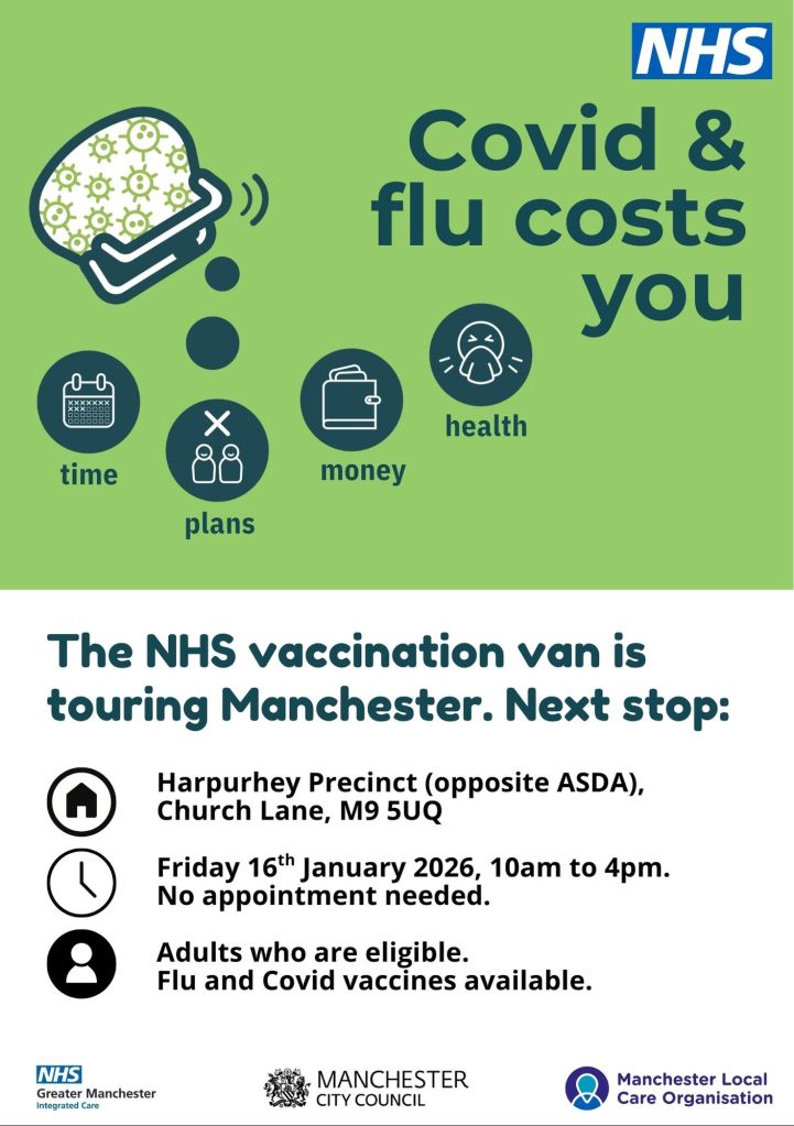Wellfield Pharmacy’s vaccination van is coming to Harpurhey Precinct tomorrow (Friday 16th Jan.)