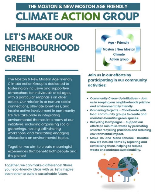 The next Moston/New Moston Age Friendly Climate Action Group meeting takes place this Friday: